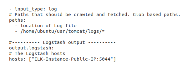 - Edit the filebeat.yml and do some configuration modifications which is required